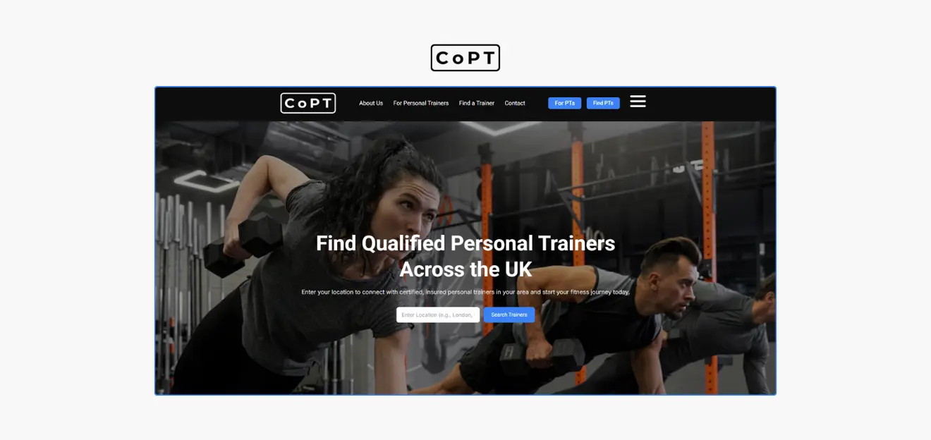 Finding the right personal trainer is one of the biggest challenges for people starting their fitness journey. CoPT wanted to change that. Their mission was simple: build the UK’s most reliable platform where anyone could find certified, insured, and qualified personal trainers with complete confidence.